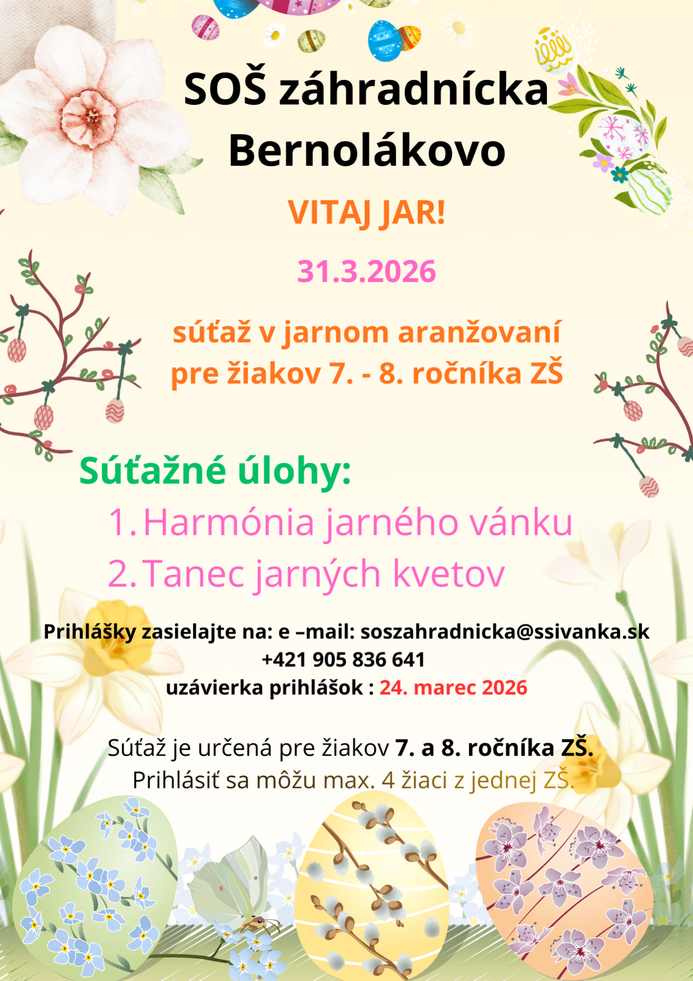 Medzinárodná súťaž Valentín 2026 sa konala 5. februára v SOŠ záhradníckej v Bernolákove. Súťaže sa zúčastnilo 28 študentov zo záhradníckych škôl z Ostravy, Szombathely, Budapešti, Košíc, Žiliny, Pruského, Kravan nad Dunajom, Rakovíc, Dunajskej Stredy a našej školy.